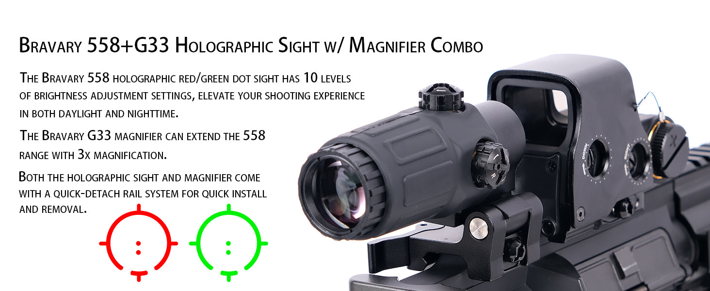 558 G33 Red & Green Dot Holographic Reflex Sight Scope with G33 3X Magnifier Combo Built-in Flip QD Mount