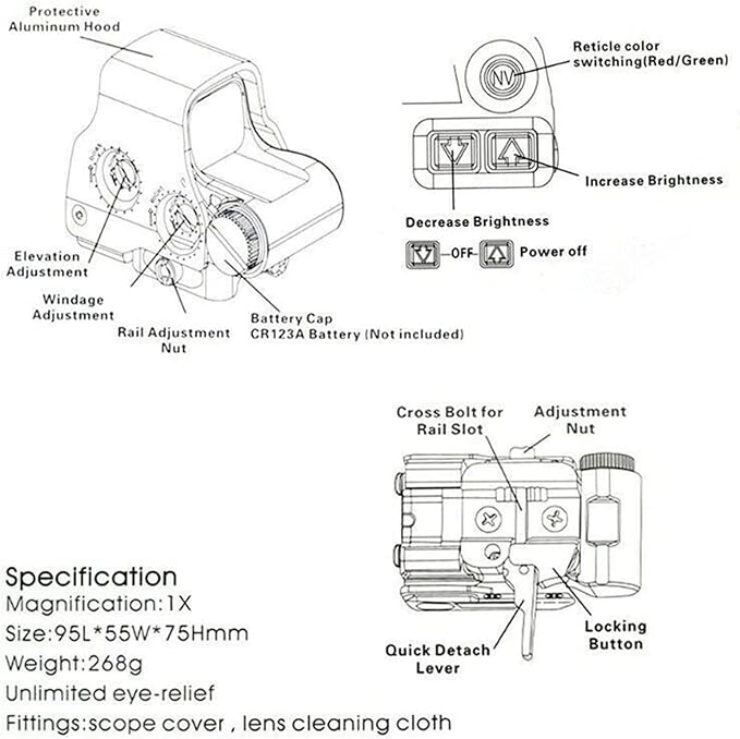 - Auto Power Off: The red dot sight will auto power off when it is stationary for a period of time, effectively extending the time of battery use.