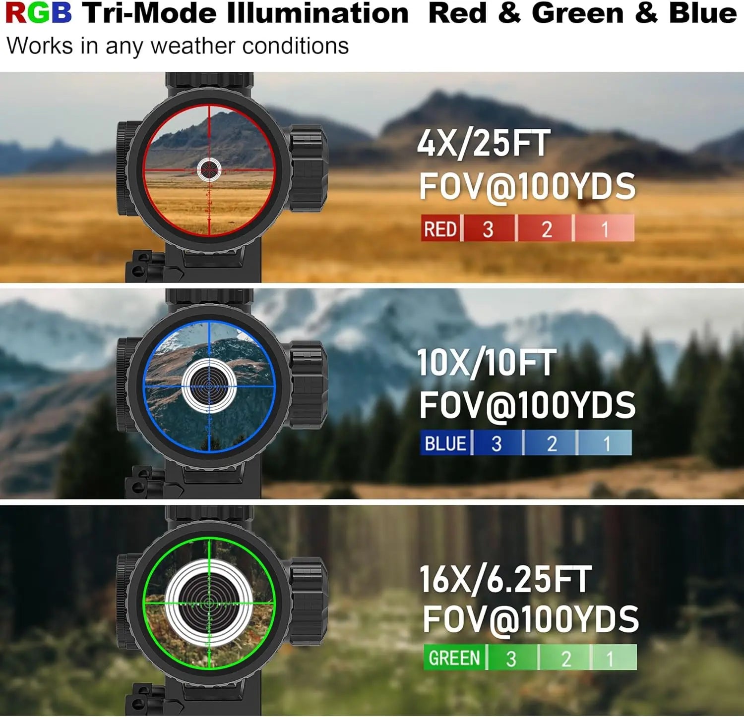Equipped with a sunshade that reduces glare in bright environments and a built‑in bubble level that helps maintain perfect level alignment to eliminate cant errors, ensuring maximum shooting accuracy.