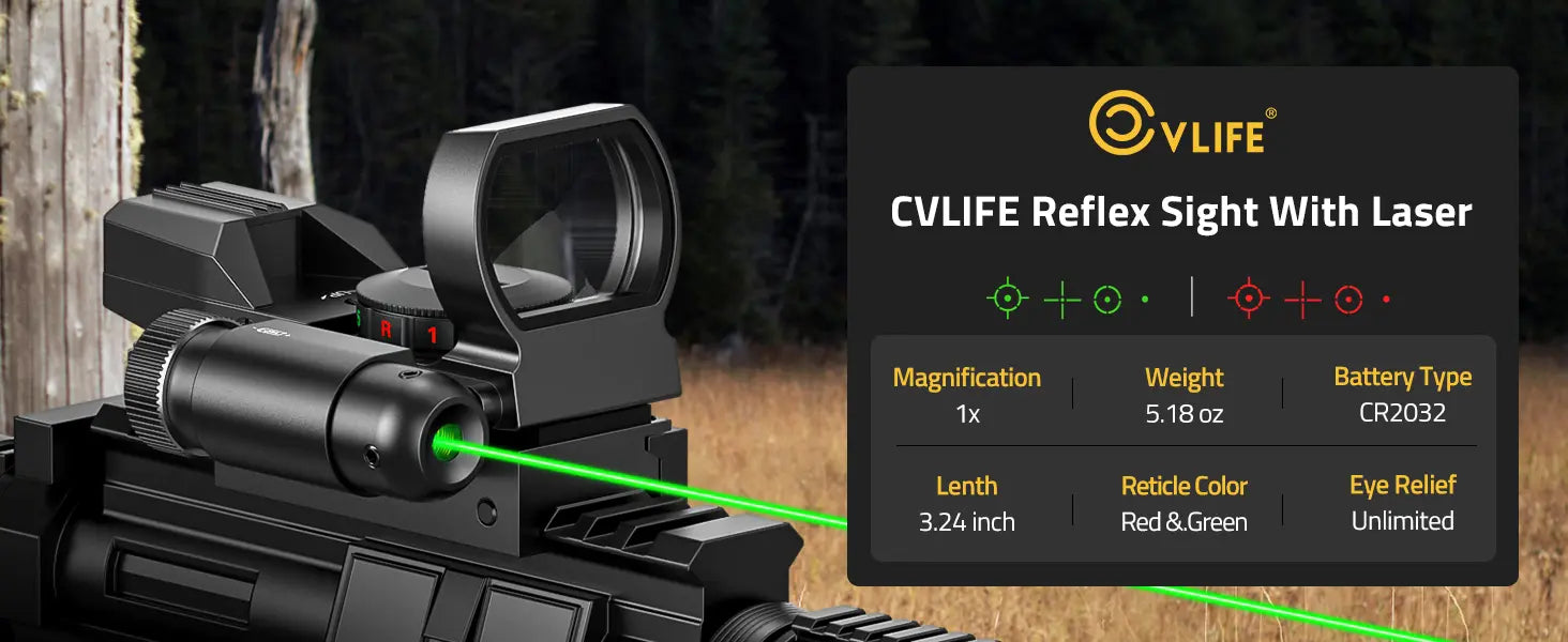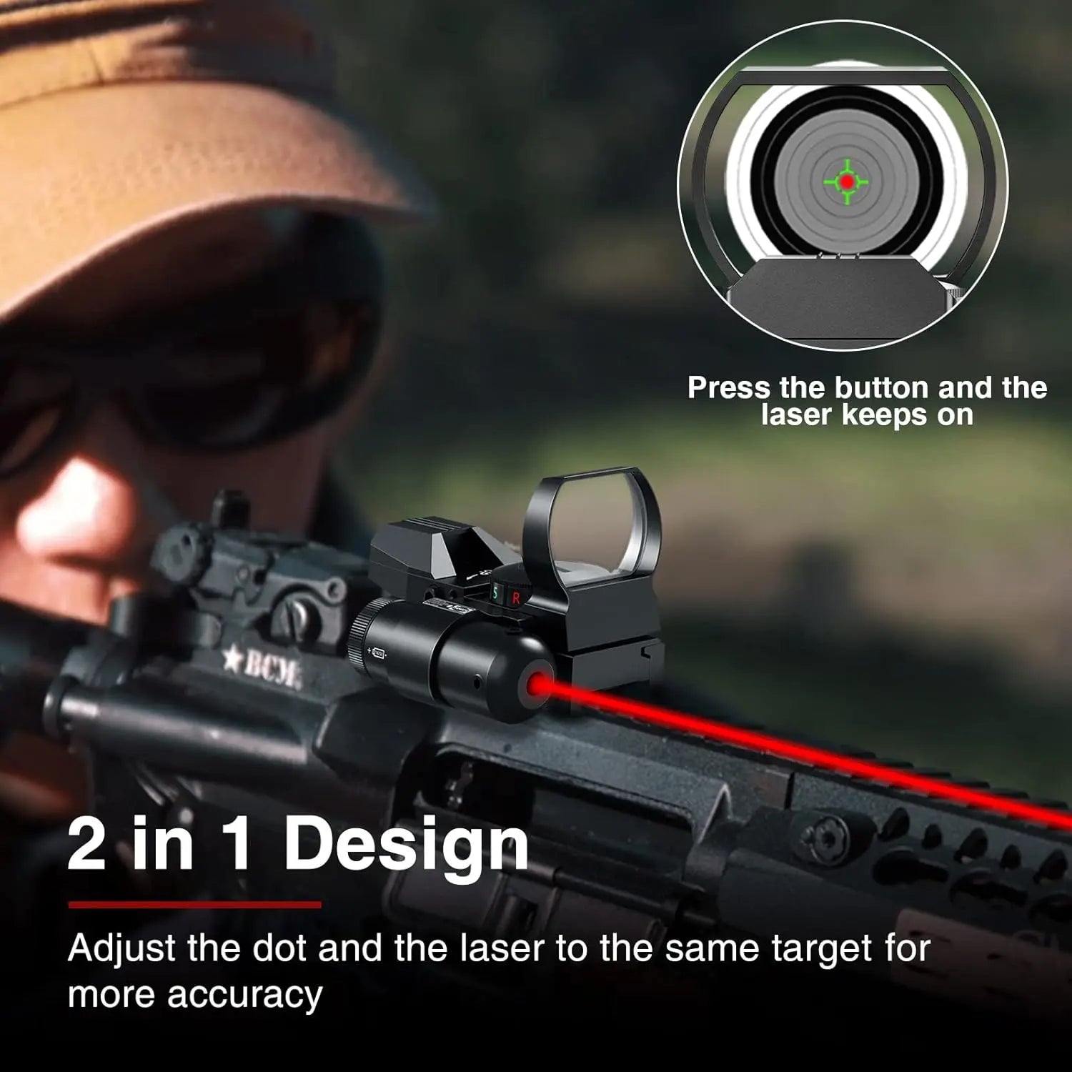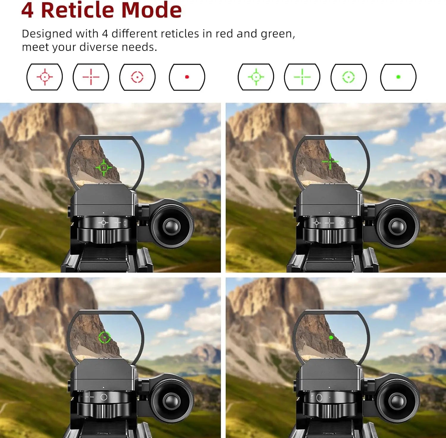 Reflex Sight - 4 Reticle Red & Green Dot Sight Optics with Integrated Red/Green Laser Sight Less Than 5mW Output