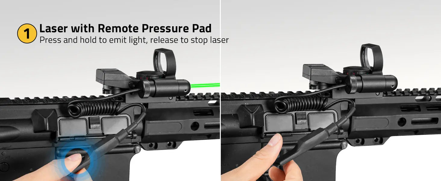 - Efficient Green Laser Sight: Includes a Class IIIA green laser (<5mW) for quick target acquisition. The laser enhances aiming speed and accuracy, suitable for both beginners and pros